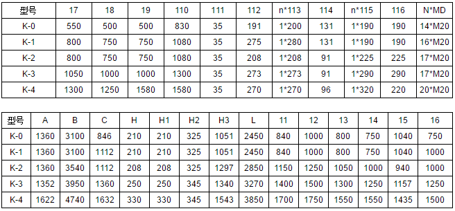 K型往復(fù)式給料機(jī)技術(shù)參數(shù)表: