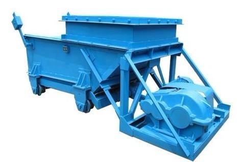 K型往復(fù)式給料機(jī)是由機(jī)架、底板(給料槽)傳動(dòng)平臺(tái)、漏斗閘門(mén)、托輥等組成。其傳動(dòng)原理:當(dāng)電動(dòng)機(jī)開(kāi)動(dòng)后,經(jīng)彈性聯(lián)軸器、減速器、曲柄連軒機(jī)構(gòu)拖動(dòng)傾斜的底板在插輥上作直線(xiàn)往復(fù)運(yùn)動(dòng),將煤均勻地卸到運(yùn)輸機(jī)械或其它篩選設(shè)備上。K型往復(fù)式給料機(jī)設(shè)有帶漏斗、帶調(diào)節(jié)閥門(mén)和不帶漏斗、不帶調(diào)節(jié)閥門(mén)兩種形式。該機(jī)適用于礦井和選煤廠(chǎng),將煤碳經(jīng)煤倉(cāng)均勻地裝載到輸送機(jī)或其它篩選、貯存裝置上。